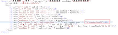 下图是一个SQL注入攻击的例子,这是Mybatis的框架,我们可以看到框线中是用$符取了一个前端的参数,很容易造成SQL注入。