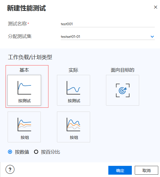 打开测试管理 ,创建测试集和测试场景,选择工作负载/计划类型
